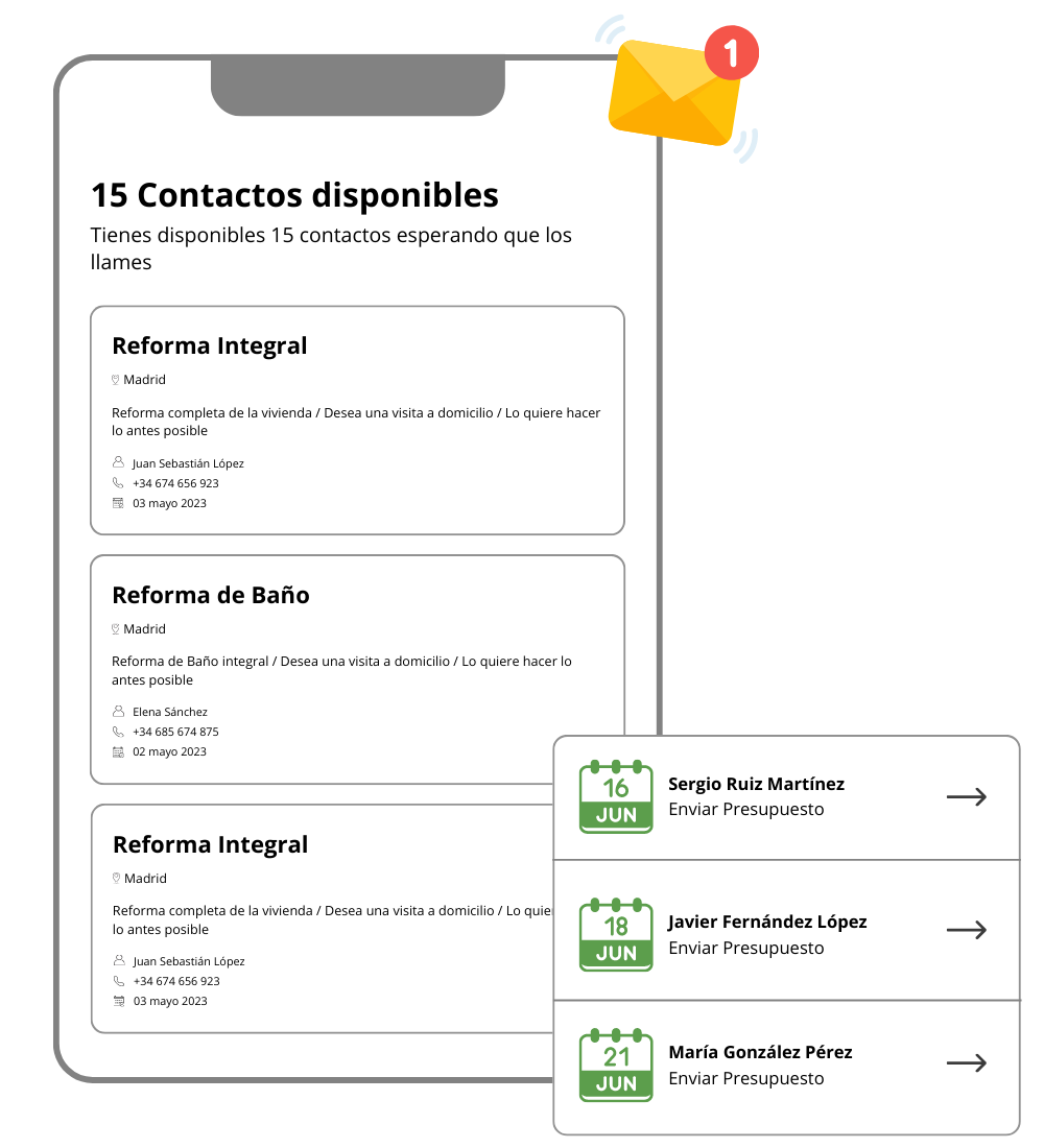 Contactos verificados que están interesados en servicios de reformas.